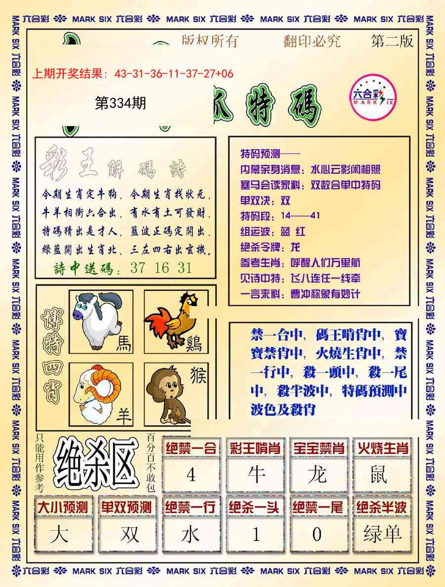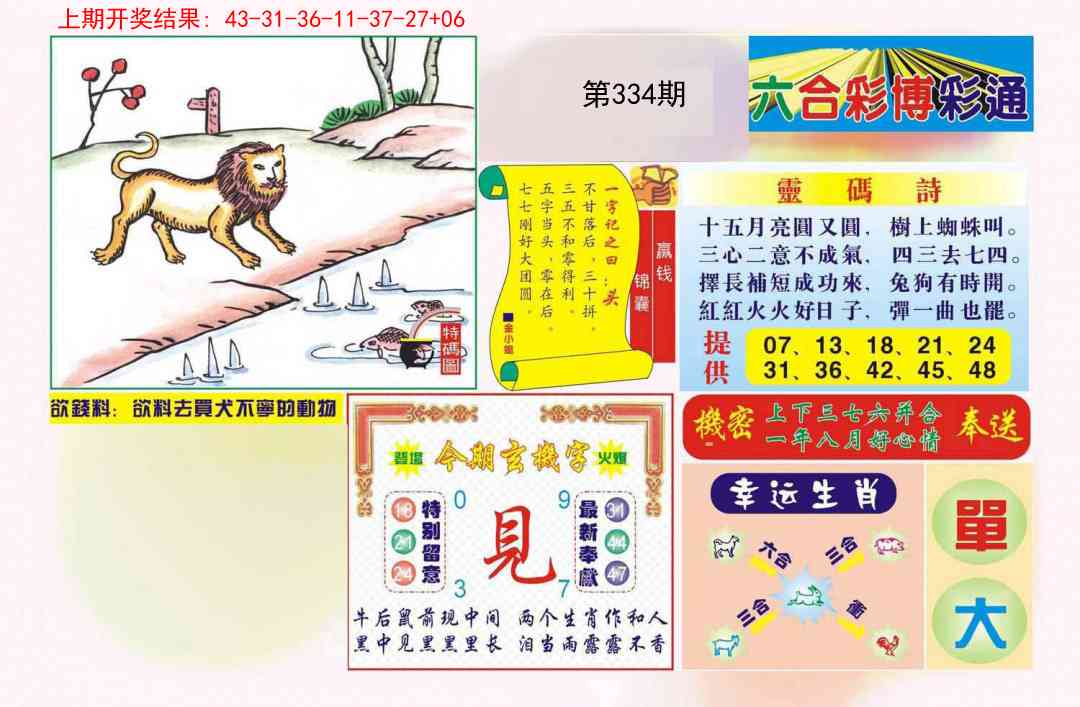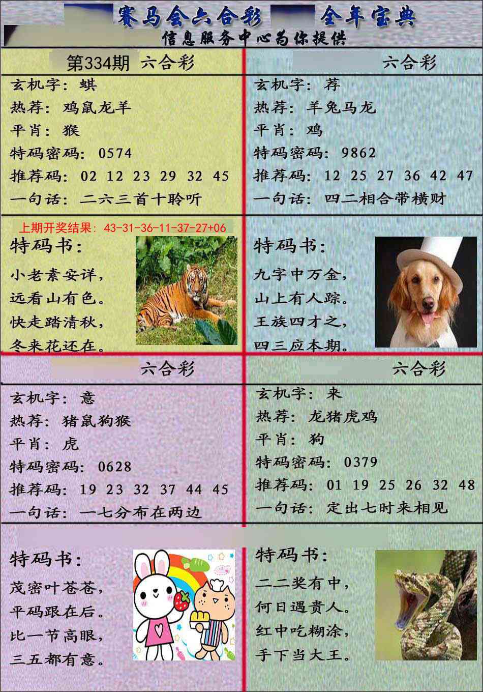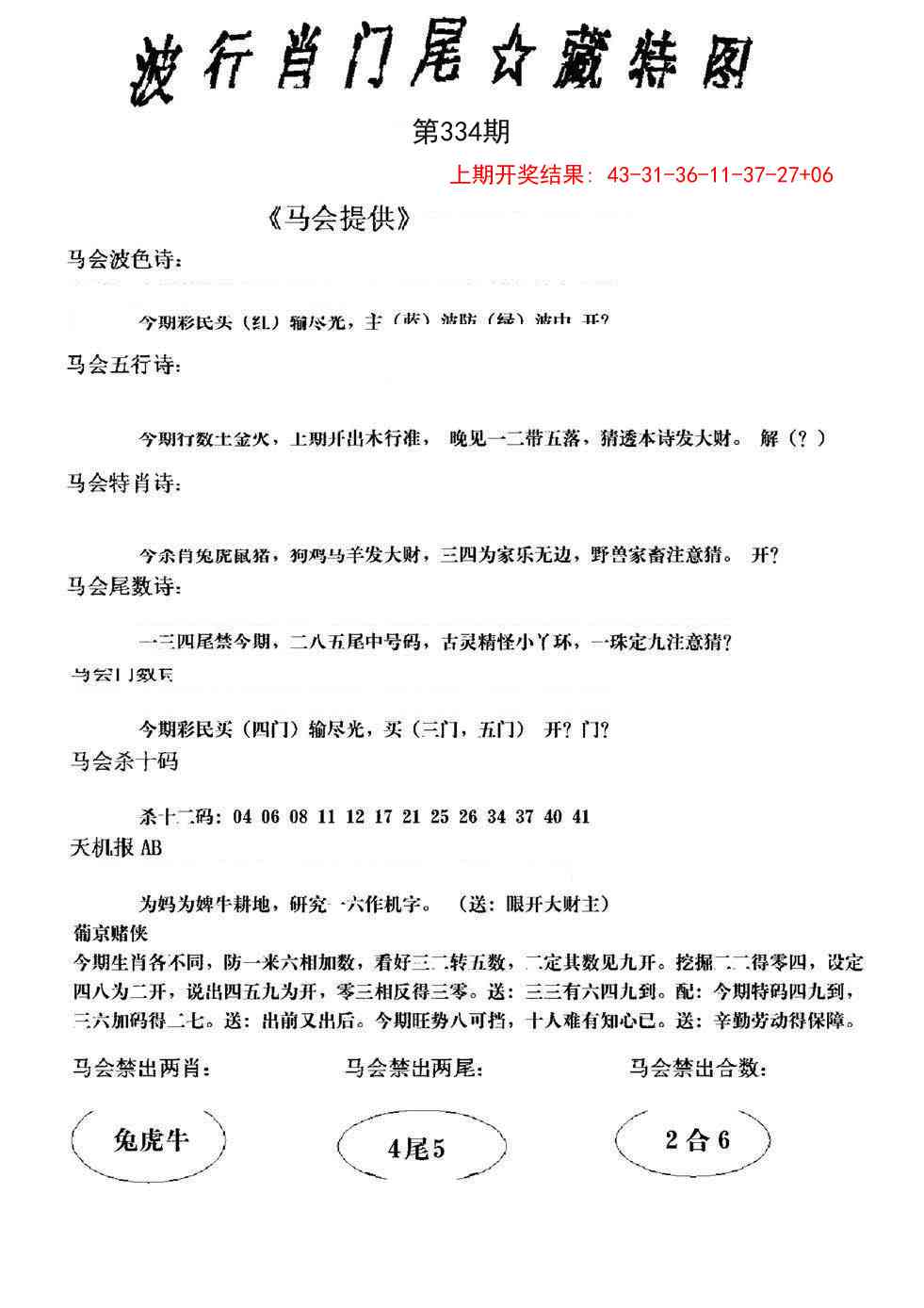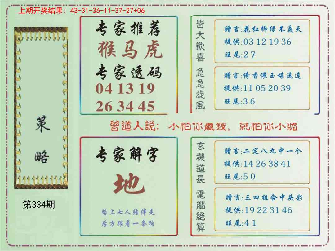 334期:三肖[虎狗蛇] 334期:三尾0-4-2