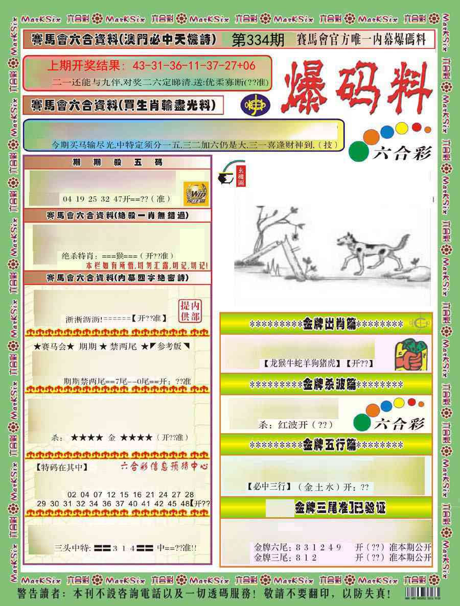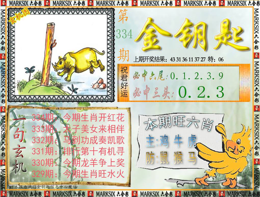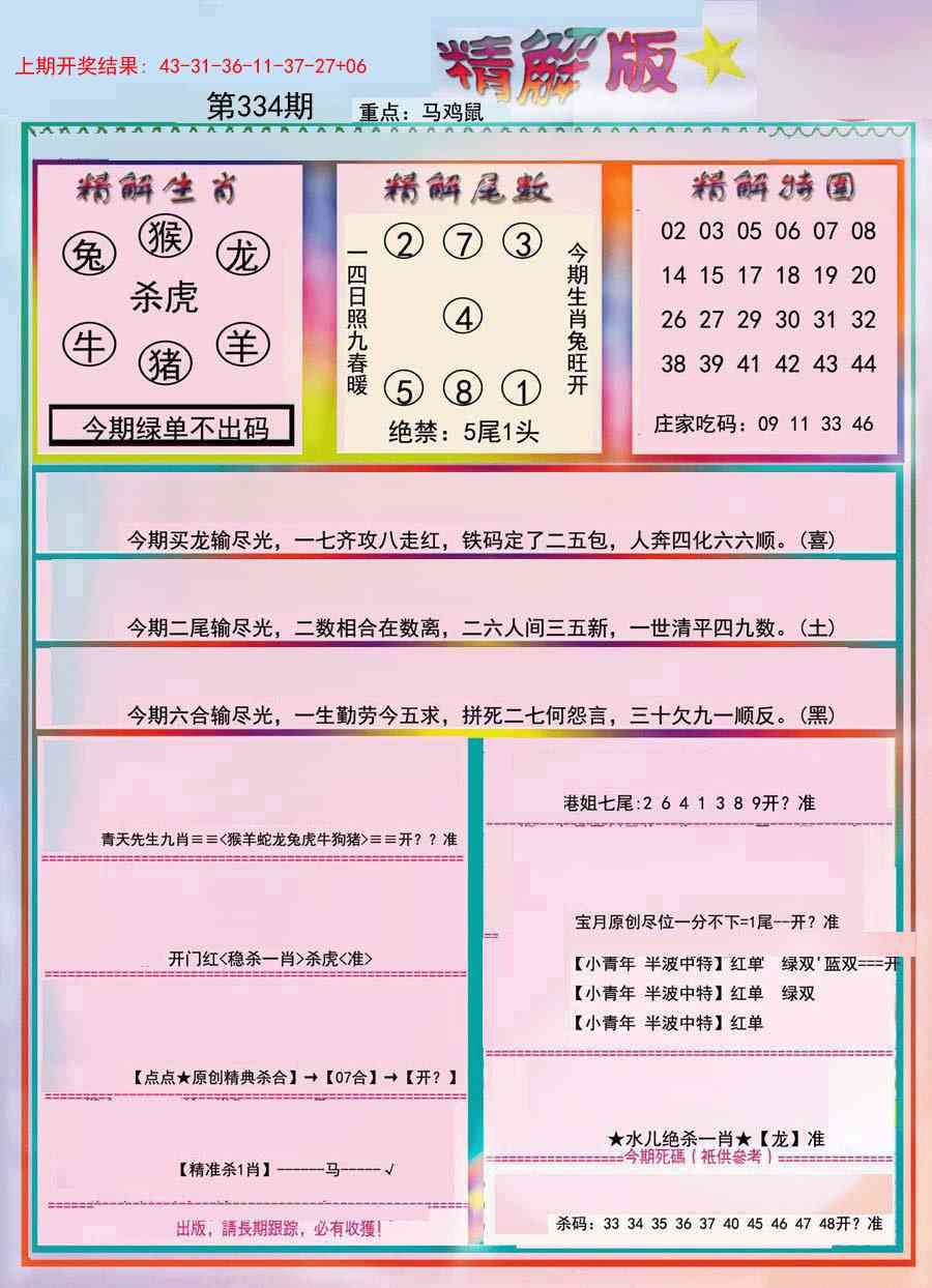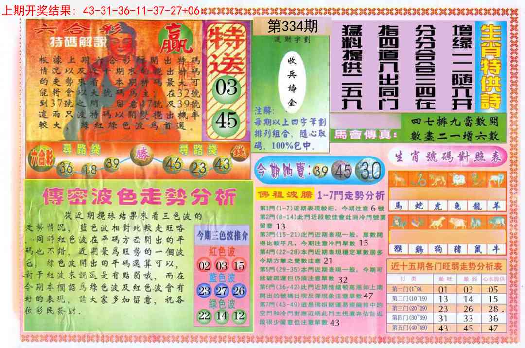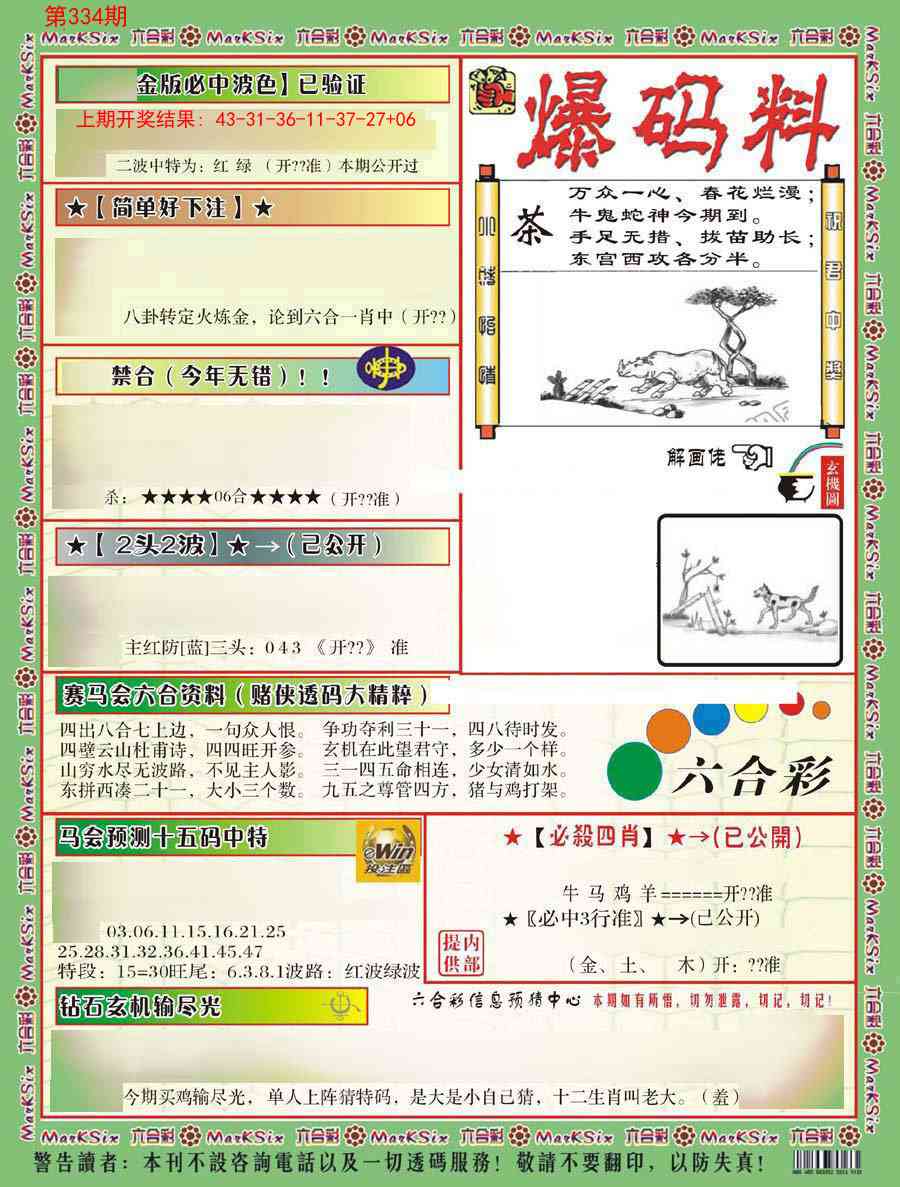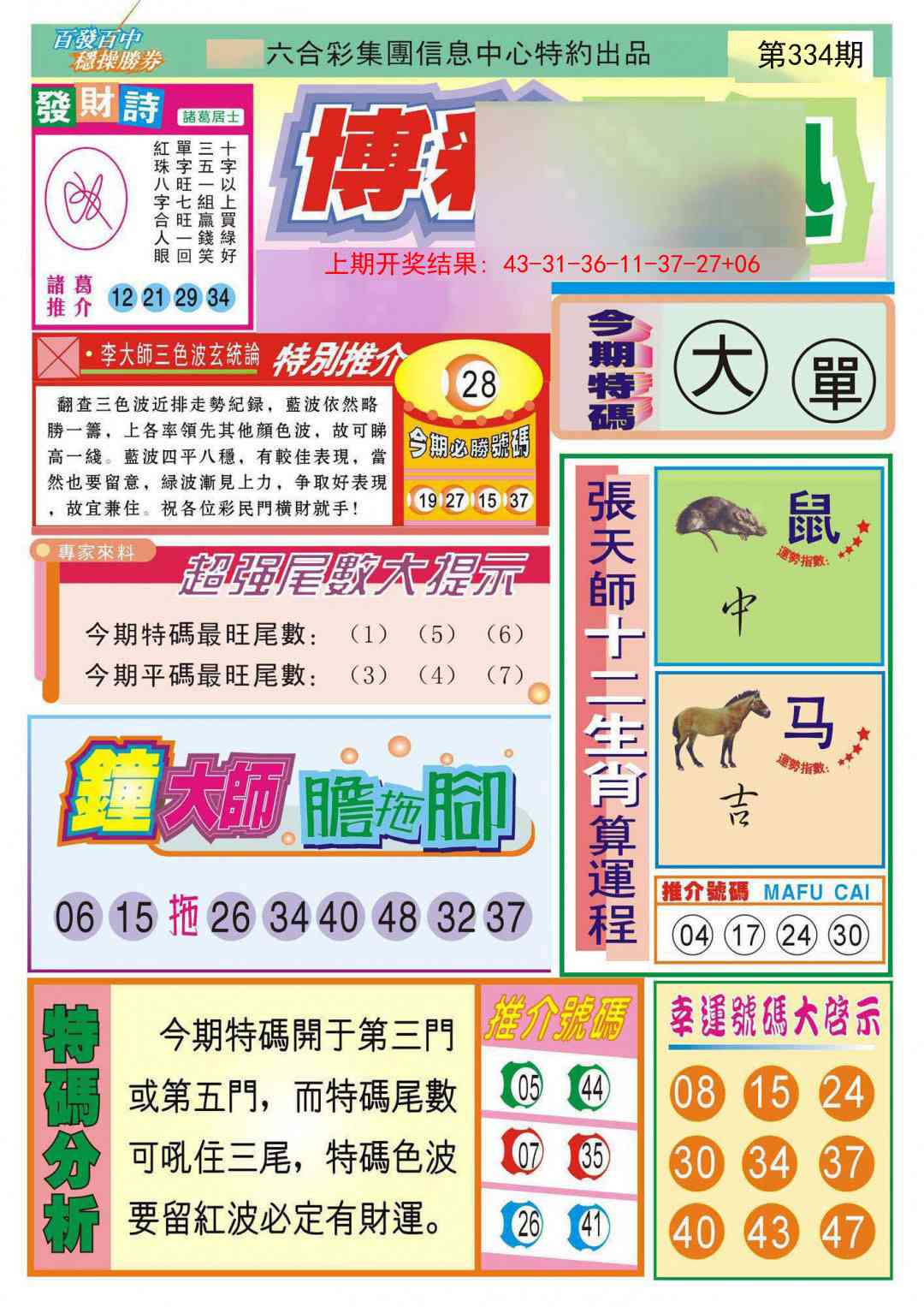 334期:三肖[虎狗蛇] 334期:三尾0-4-2