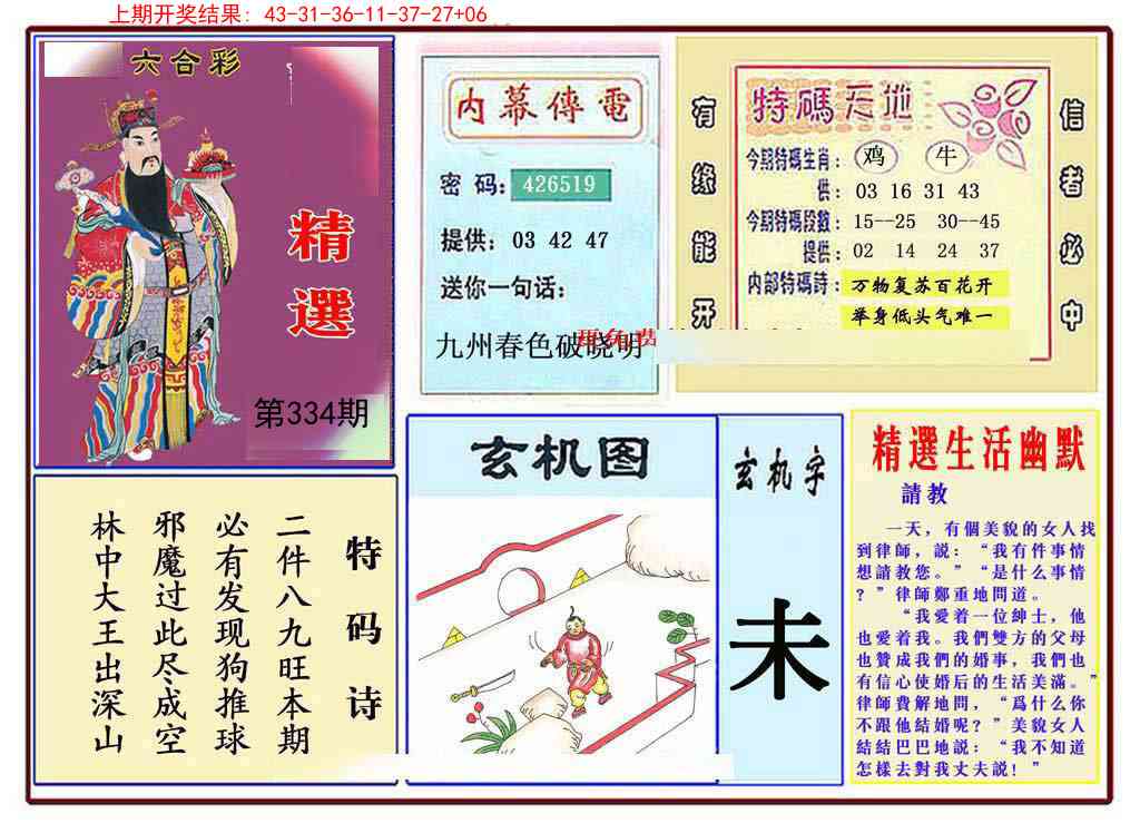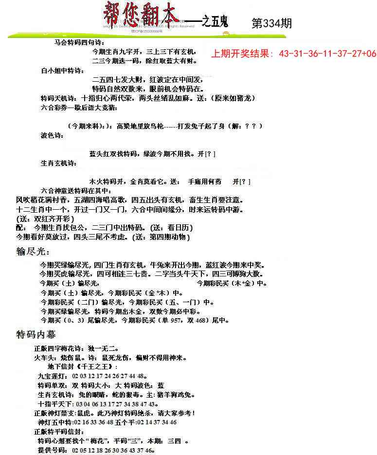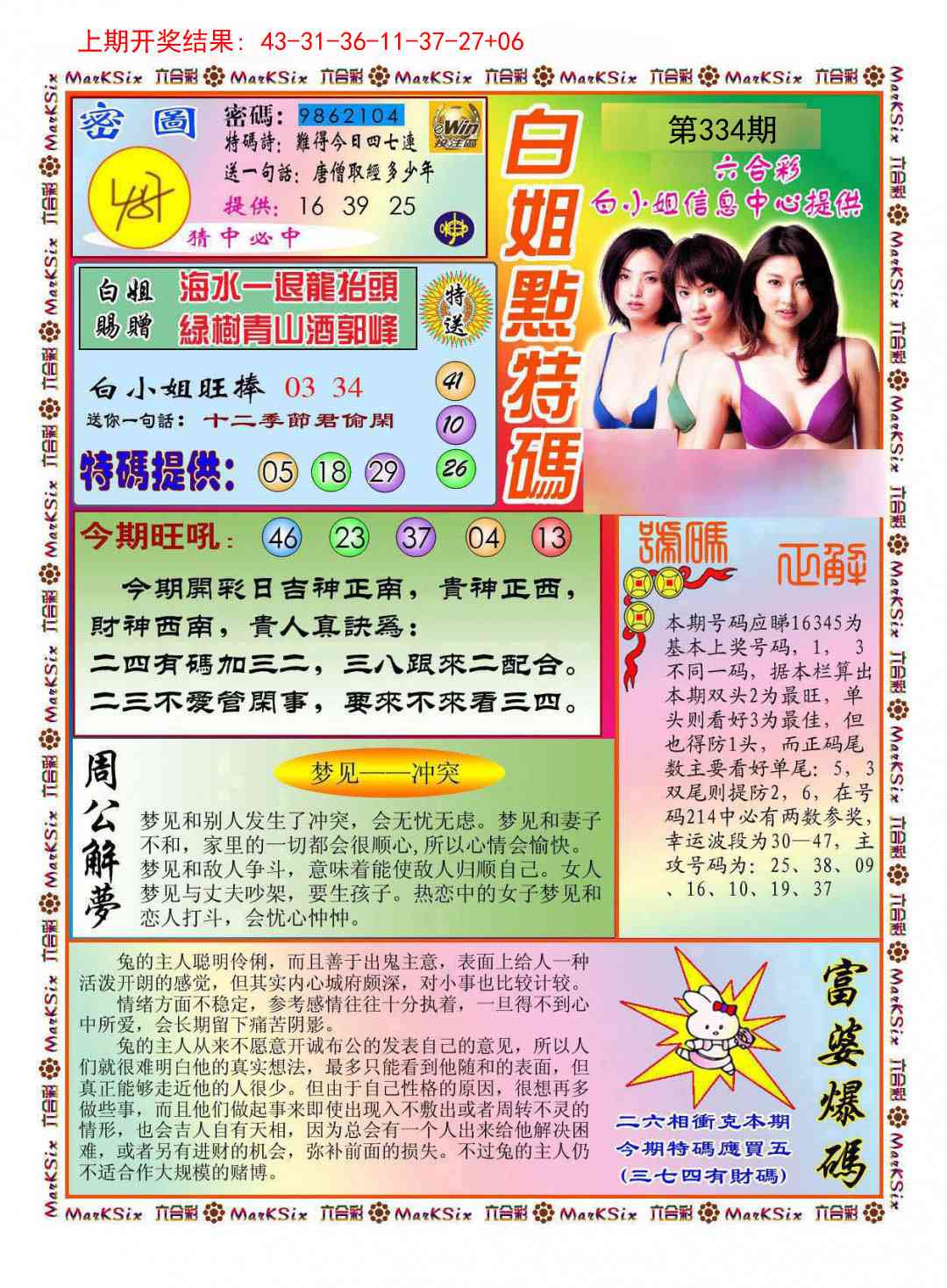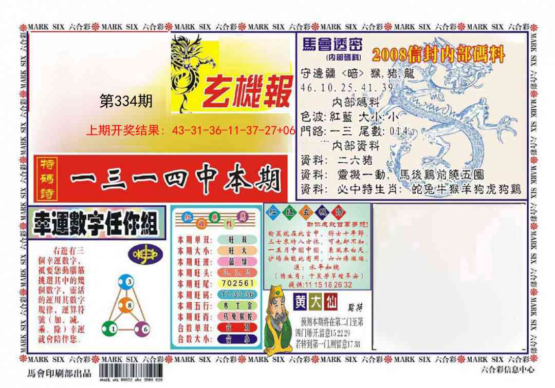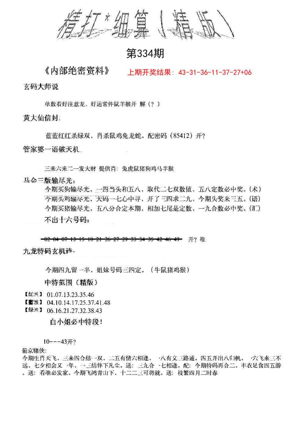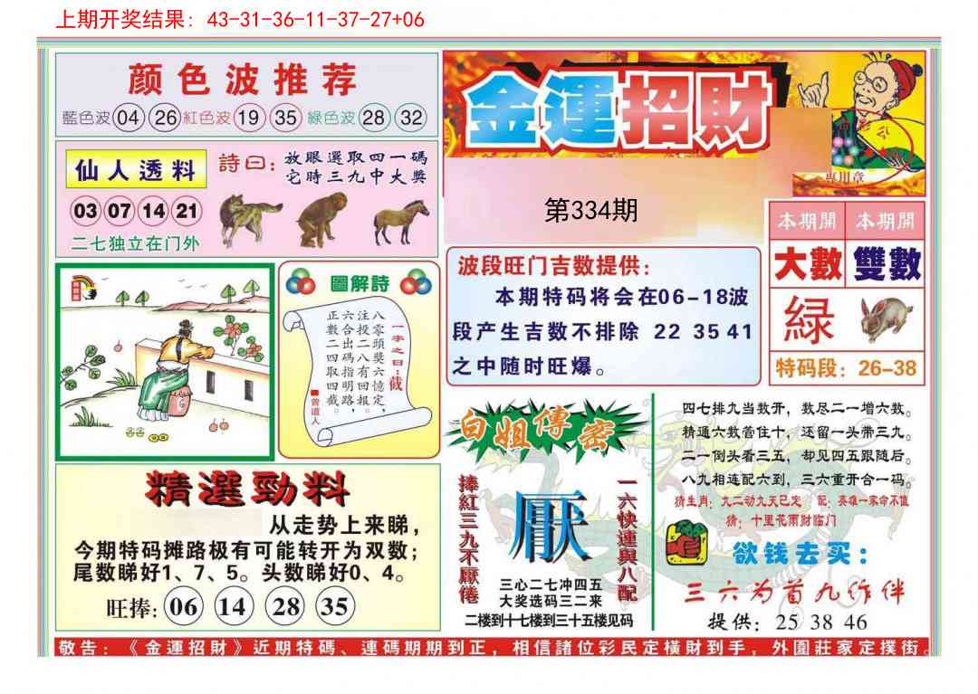 334期:三肖[虎狗蛇] 334期:三尾0-4-2