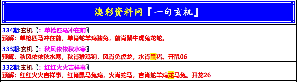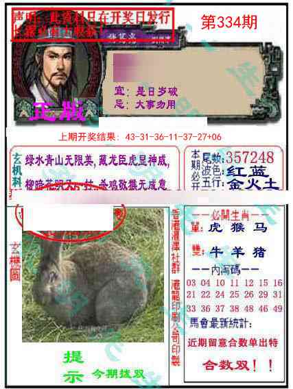 334期:〖六合战将〗🚴三组平特③连肖🚴精准数据实力把控